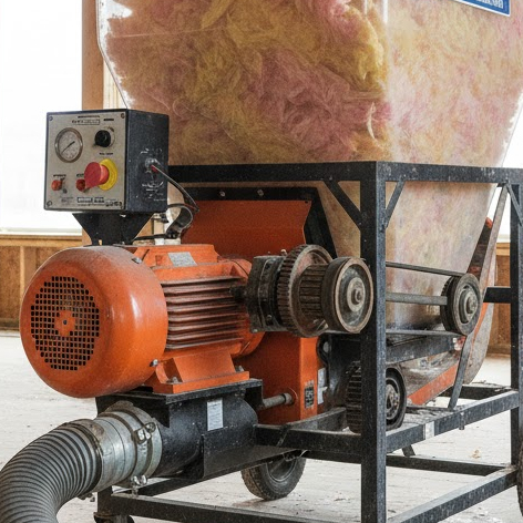 A machine is used to blow the loose fiberglass fibers into the desired area, ensuring it fills every gap and creates a continuous insulating layer.
